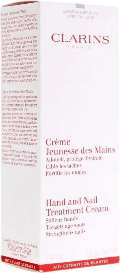 Clarins Hand & Nail Treatment Cream, Gräddvit, Unisex, Alla hudtyper, Fuktgivande, Regenererande, Mjukgörande, Stärkande, 100 ml, Rör
