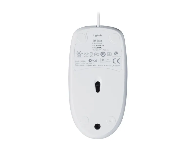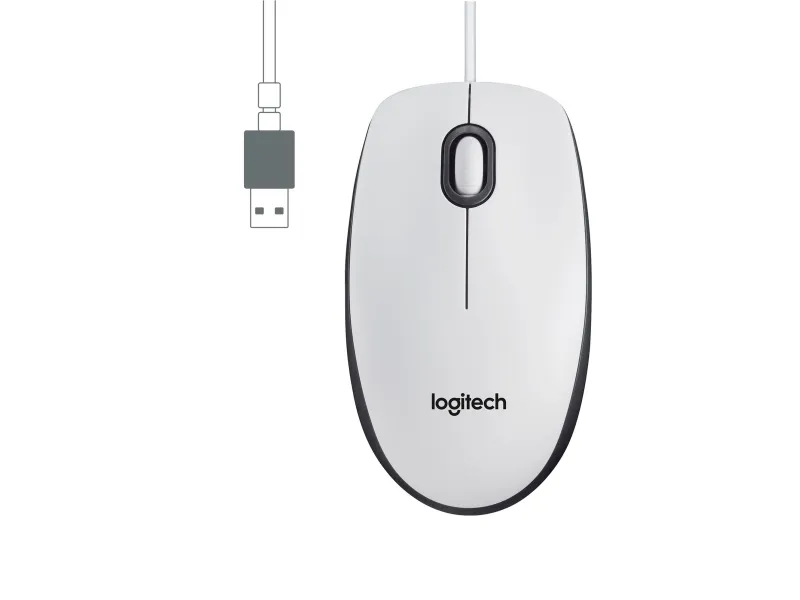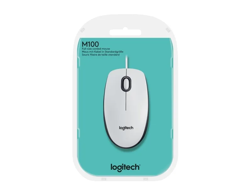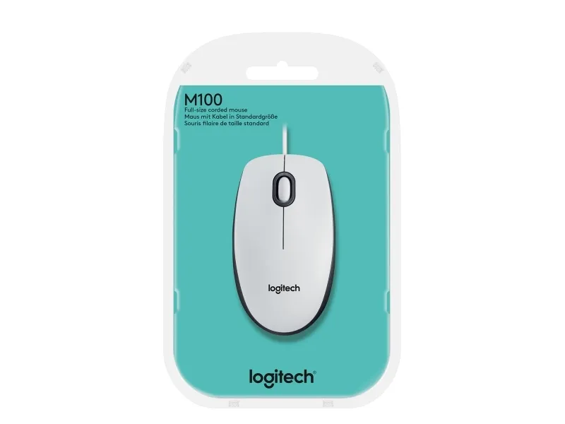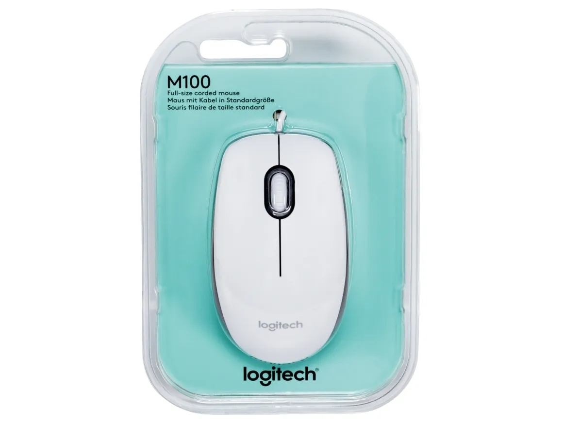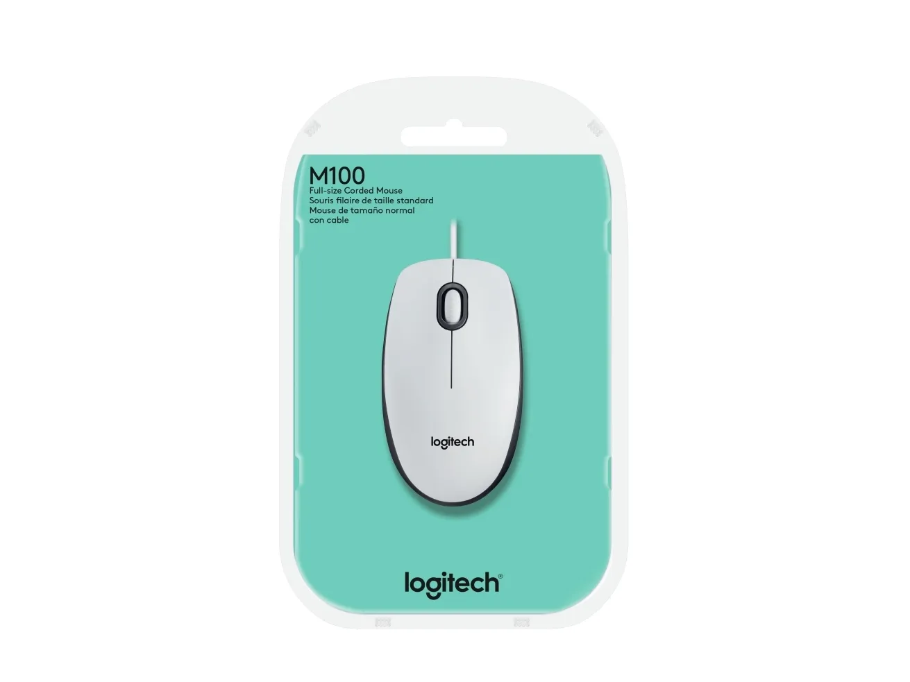 Logitech M100 - Mus - höger- och vänsterhänta - optisk - 3 knappar - kabelansluten - USB - vit