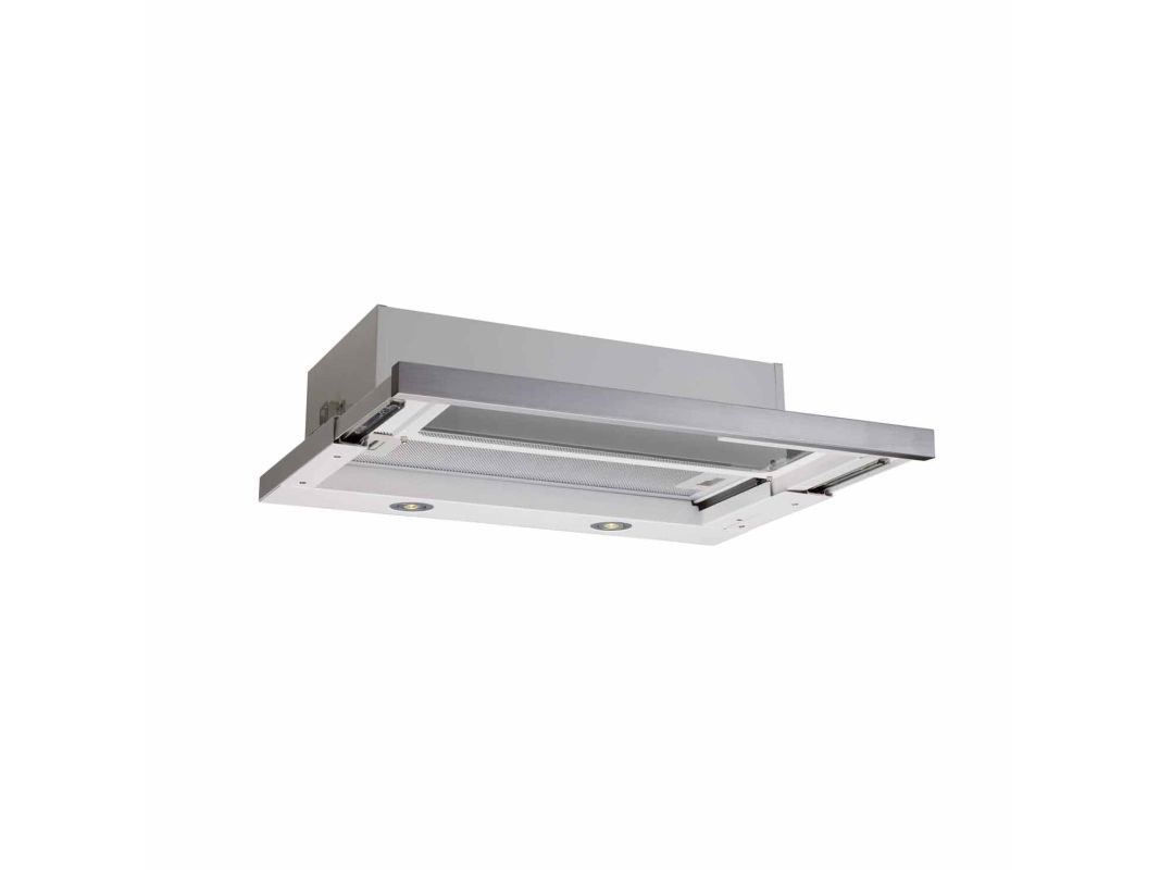 Eicoline X, Udtræksemhætte, Rustfrit stål / hvid / glas - Med intern motor Klassisk udtræksemhætte med aftræk i venstre side