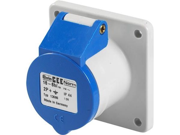 BALS CEE grenuttag infällt H6 230V 16A 3-pol blå rak fläns 75x75mm, Quick Connect® IP44, polyamid