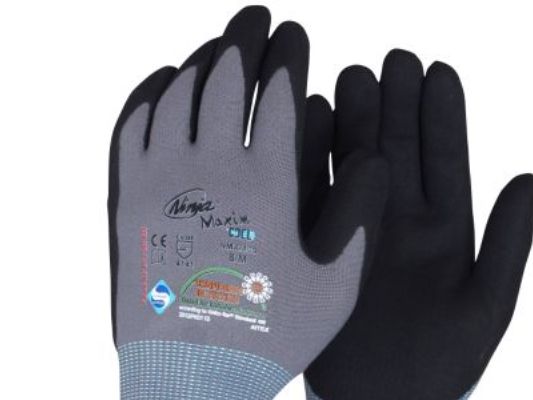 Ninja Maxim arbetshandskar str. 8 nylon/spandex, halvdoppad, grå m/svart nitrilbeläggning