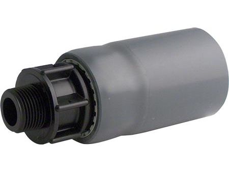 PLASTLINE 50x1½" övergång till inmatningsböj med utvändigt gängat. 50 mm övergångar till 90 mm inmatningsböj