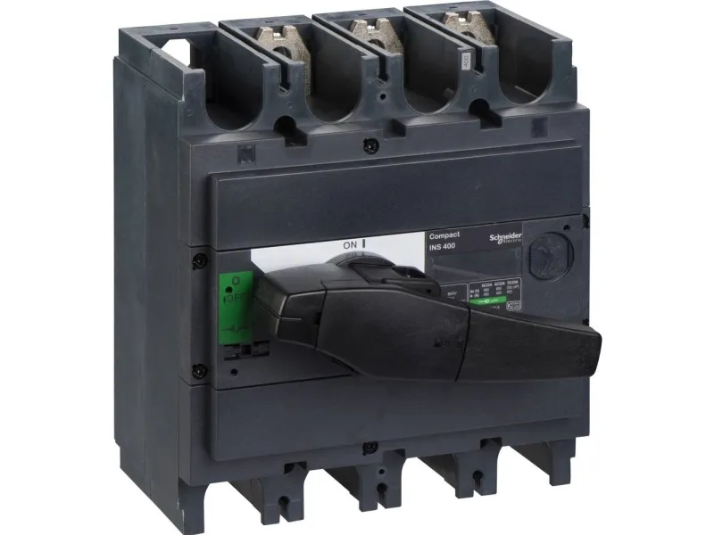 Schneider 31110 lastskilleafbryder i400Lasttrennsch. I400, 3 P, 400A/690V DC/AC, sort drejestang. Serie: Compact - produkt eller enhedstype: Lastskilleafbryder - produktnavn: I400 - beskrivelse poler: 3P - netværkstilslutning: AC, DC - netværk frekvens: 50/60 Hz - nominel driftsstrøm ie: AC-23A : 400 A AC 50/60 Hz 480 V NEMA, AC-22A : 400 A AC 50/60 Hz 660/690 V, AC-22A : 400 A AC 50/60 Hz 380/415 V, AC-23A : 400 A AC 50/60 Hz 380/415 V, DC- 23A : 400 A DC 125 V 2 poler i serien, AC-22A : 400 A AC 50/60 Hz 500/525 V, AC-23A : 400 A AC 50/60 Hz 660/690 V, DC- 22A : 400 A DC 125 V 2 poler i serien, AC-22A : 400 A AC 50/60 Hz 480 V NEMA, AC-23A : 400 A AC 50/60 Hz 440/480 V, AC-23A : 400 A AC 50/60 Hz 220/240 V, AC-22A : 400 A AC 50/60 Hz 440/480 V, AC-22A : 400 A AC 50/60 Hz 220/240 V, AC-23A : 400 A AC 50/60 Hz 500/525 V - Bemessungssto?spændingsstyrke [(Uimp]: 8 kV gema? IEC 60947-3, 8 kV - Nennkurzschl.-switch-effekt. Icm: 330 kA 690 V AC 50/60 Hz med tilkoblet beskyttelse afbryder, 50 kA 690 V AC 50/60