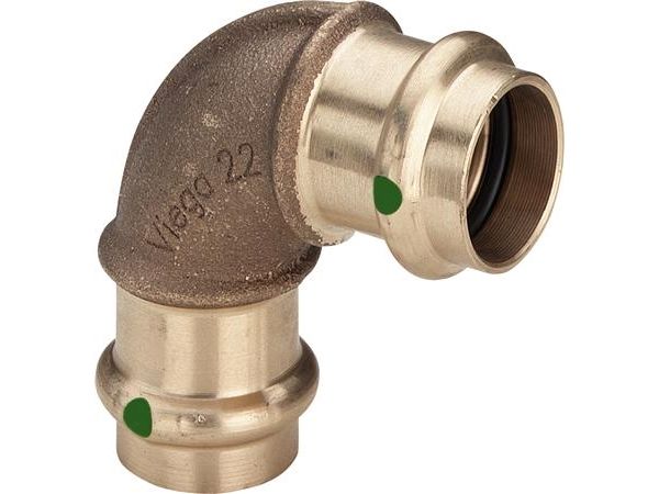 VIEGA Sanpress böj 90 grader 35 mm röd mässing (rödgods) hylsa/hylsa, SC-Contur