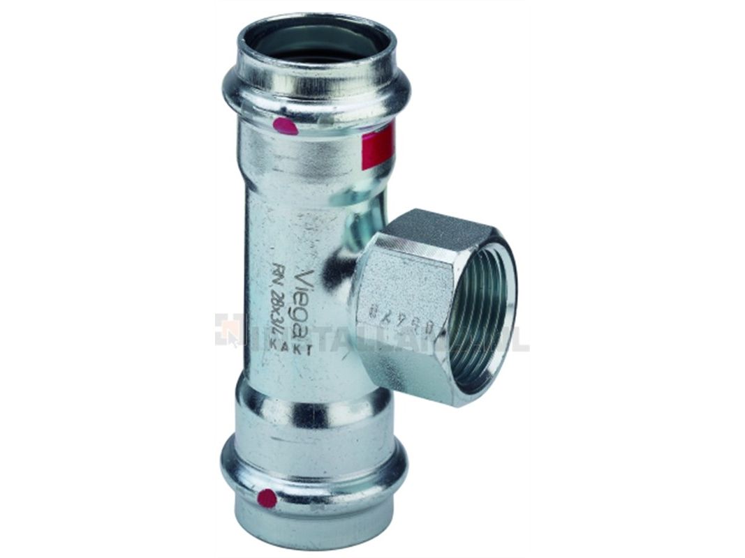 VIEGA Prestabo T-stycke 22x½"x22 i olegerat stål med muffe på gren, SC-contur