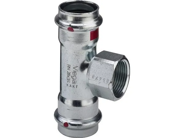 VIEGA Prestabo tee 28x1x28 af ulegeret stål med muffe på grenen, SC-contur
