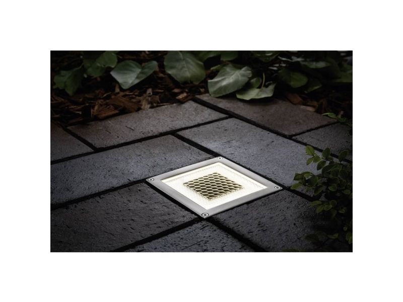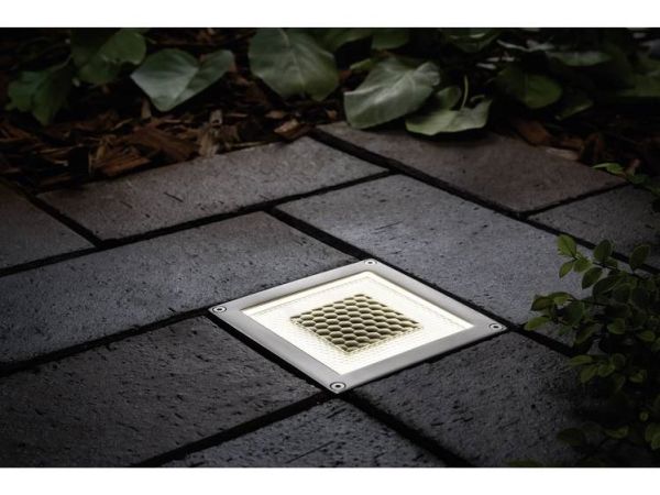 This solar floor recessed luminaire can provide you with light anywhere in the garden - without having to install any cables. Solar cells enable the floor recessed luminaires to operate completely without electricity. Replaceable rechargeable batteries are charged by sunlight during the day and the LEDs light up when evening sets in. Thanks to its IP67 protection type, the floor recessed luminaire is guaranteed waterproof, stainless and suited for installation in walkable outdoor areas - the luminaire can easily withstand up to 500 kg in weight.