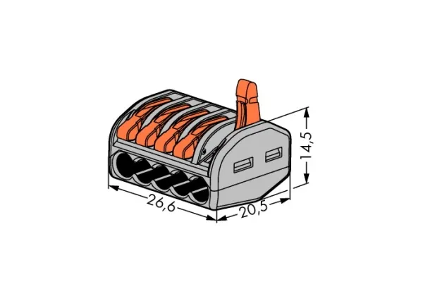 Wago 222-415. Width: 26.6 mm, Depth: 20.5 mm, Height: 14.5 mm