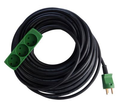 E-line Kabelsats DK 3G1,5 - H07RN-F, DK-kontakt/3 uttag m/j, neopren, 230V/16A, 25m