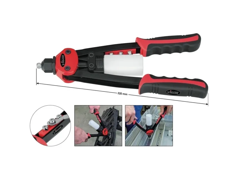 · Til blindnitter: 3,2 ∙ 4,0 ∙ 4,8 ∙ 6,4 mm. · Til kobber-, messing-, stål- og rustfri stålnitter. · Meget lav kraftanvendelse ved ekstremt kort konstruktion.