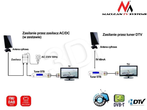 Maclean MCTV-970 - Antenn - anod - TV, radio - inomhus/utomhus, kan monteras på vägg, monteras på stång