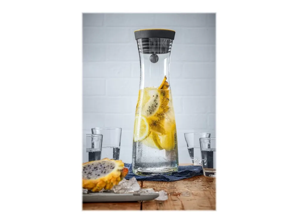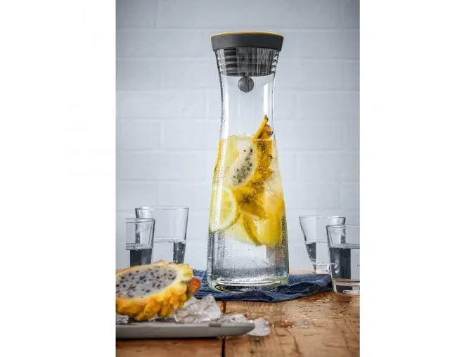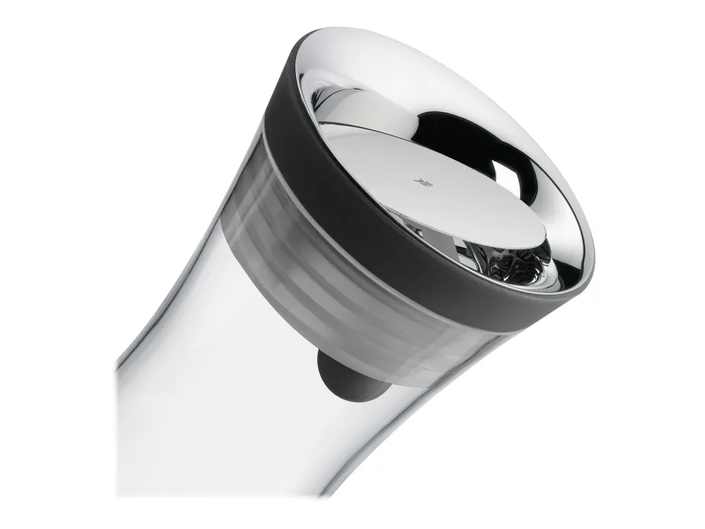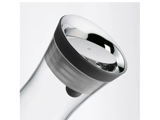 What was once served in a glass jug is now stylishly presented in a slender water carafe. While their large opening makes carafes easy to fill, the rim ensures you don’t spill a drop when pouring into the glass. WMF water carafes are available in various sizes, made from modern materials such as glass, hand-blown crystal and polished Cromargan®. The elegant carafes come with either a simple cork stopper or a high-tech stopper. The CloseUp stopper opens and closes automatically thanks to a tilt mechanism, while an integrated strainer holds ice cubes and slices of lemon in the carafe when pouring. WMF water carafes fit into the drinks compartment of any standard refrigerator.