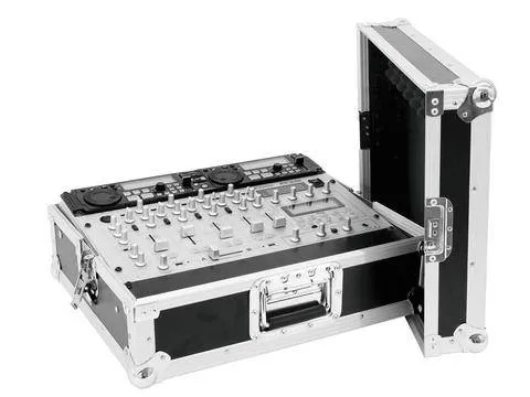 Mikser-case professionel MCV-19,variabel,sw 8HE Passer til apparater på 483 mm (19), for eksempel Controller og mixerpulte, med 8 HE · skrå, profilskinner til optimal betjening af enheden fra oven · indvendigt rum polstret med skum (sort) · førsteklasses forarbejdning med 6 mm flerlagslimtræ, sort lamineret · aluminiumprofilramme (25 mm) med afrundede hjørner · aftageligt låg · trebenede, mellemstore stålkuglehjørner · 2 førsteklasses, Aflåselige butterfly-låse · 4 stålforstærkede gummifødder · polstret bæregreb · skruer, rackmøtrikker og spændeskiver vedlagt. Professionel Flightcase til apparater på 483 mm (19).