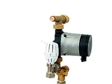 Komplet parallelshunt med cirkulationspumpe, selvvirkende termostat med dykrørsføler og integreret kontraventil mellem til- og afgang. Incl. UPM3 pumpe 15/70. Passer til 1'' manifold BD-nr. 046120102 til 046120112