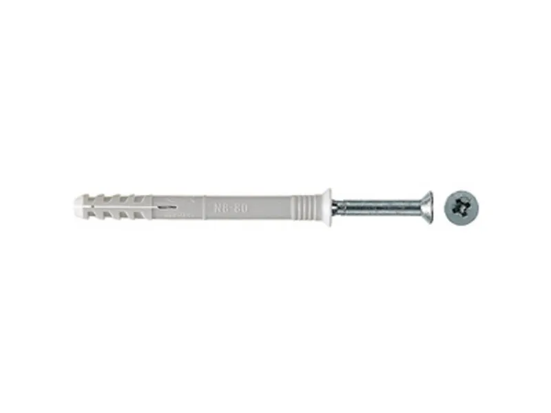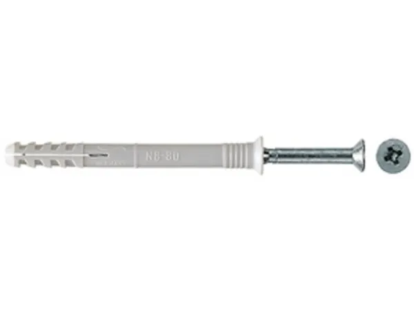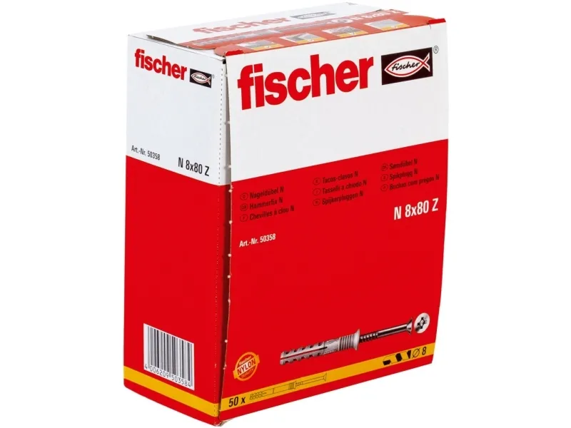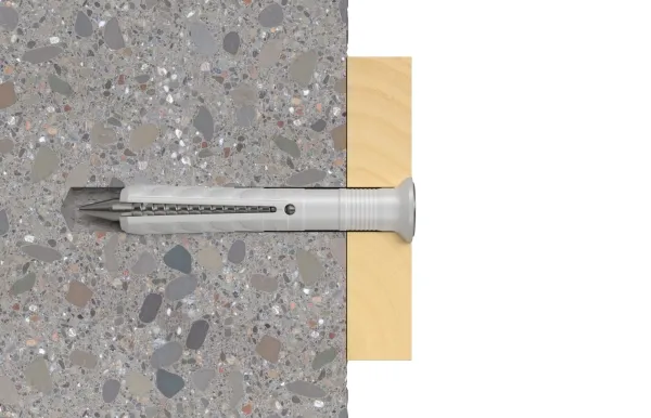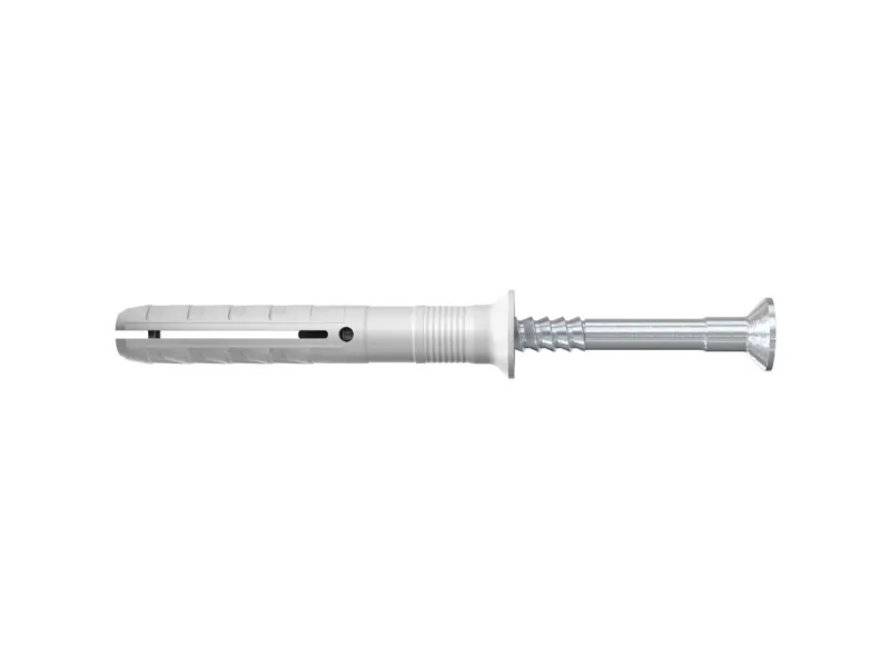 The fischer Hammerfix N-S with countersunk head consists of a high-quality nylon plug and a zinc-plated nail screw. These are already pre-fitted for quick assembly. The Hammerfix is led through the component in the time-saving through-type installation. When driving in the nail screw, the fixing sleeve expands and anchors itself securely in the building material. The fischer Hammerfix N-S with countersunk head is ideal for fixing timber constructions in all building materials in internal areas.