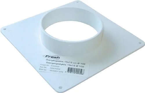 Fresh overgangsstykke, anvendes i forbindelse med overgang fra firkantede rør til runde rør eller slanger. Giver mulighed for at gå fra ø102mm til 10x15 cm. eller 15x15 cm. sammen med 500055 eller 500057. Kan også klikkes sammen med lamelrist u/bagkant.