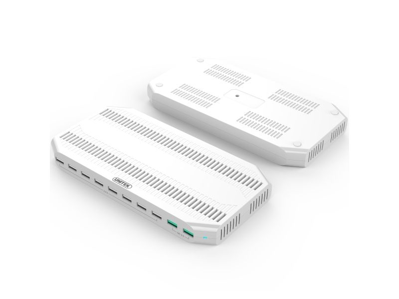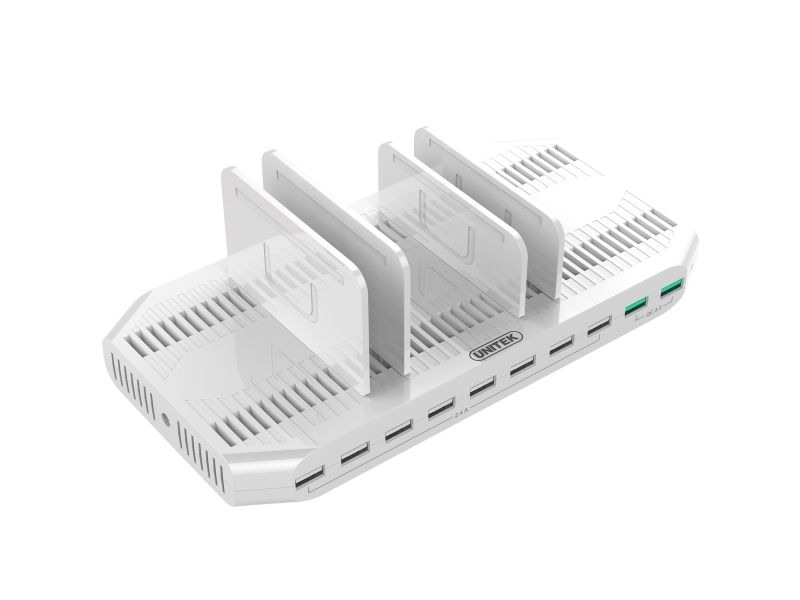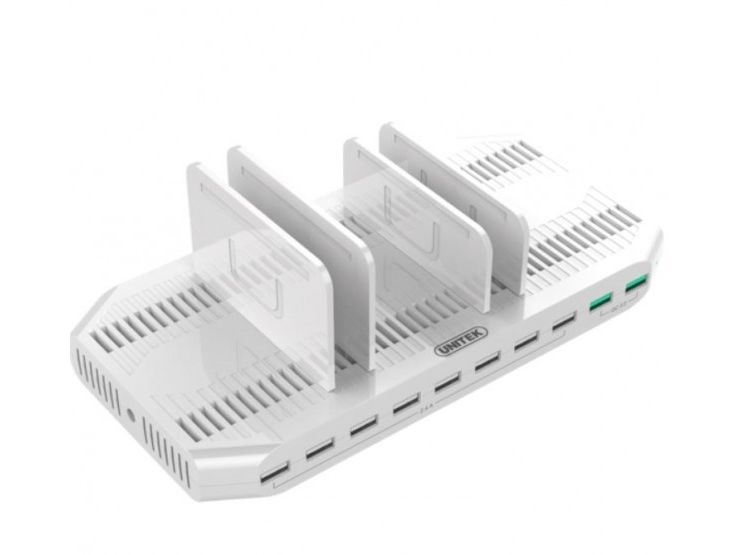 Unitek - Laddningsställ + växelströmsadapter - 96 Watt - 2.4 A - QC 3.0 - 10 utdatakontakter (USB)