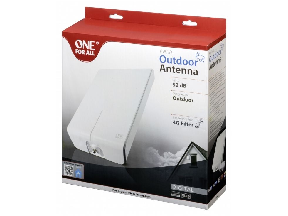 Få suverän mottagning för digital-TV med 4K Ultra HD med denna utomhusantenn från One For All, och titta på gratis DVB-T2-kanaler. Du behöver inte oroa dig för vädret, eftersom denna förstärkta utomhusantenn från One For All är utformad för att tåla även de hårdaste väderförhållandena. Den är väderbeständig upp till nivån IP55. Denna One For All-antenn har ett unikt 3G/4G/5G blockeringsfilter som skyddar mot alla mobiltelefonsignaler för att mottagningen ska bli den bästa möjliga. Installationen är mycket enkel, och en lättbegriplig snabbinstallationsguide, kablar, kontakter och allt fastsättningsmaterial ingår i paketet. För bästa möjliga prestanda rekommenderar vi att du använder denna TV-antenn från One For All inom 50 kilometers avstånd från närmsta sändare.