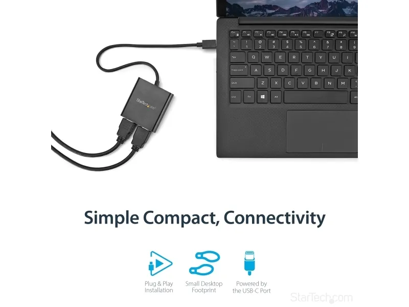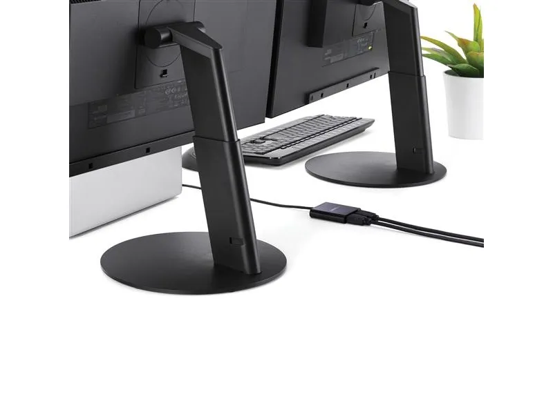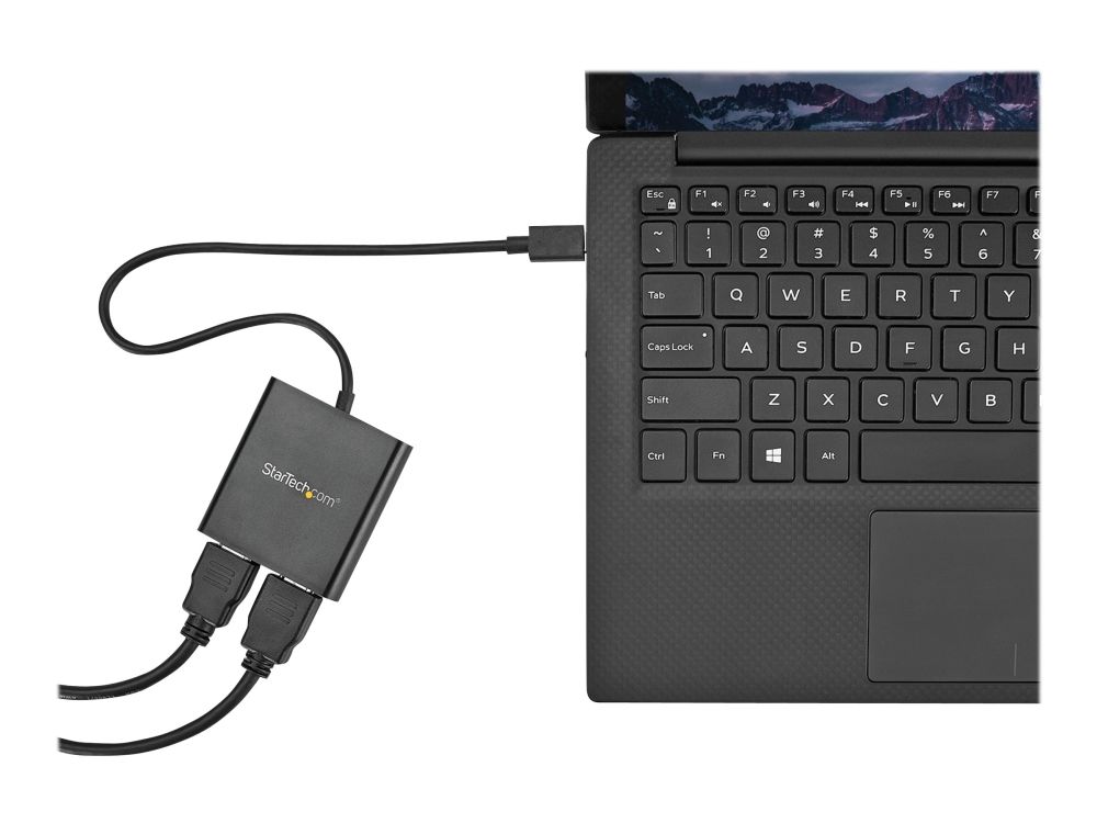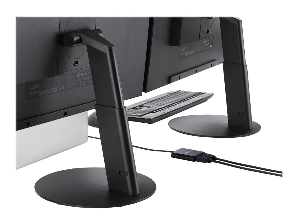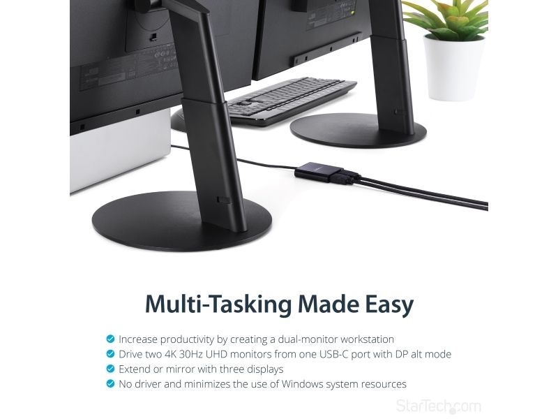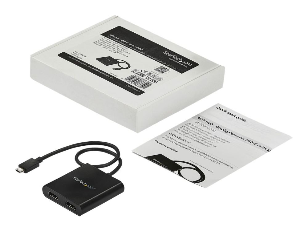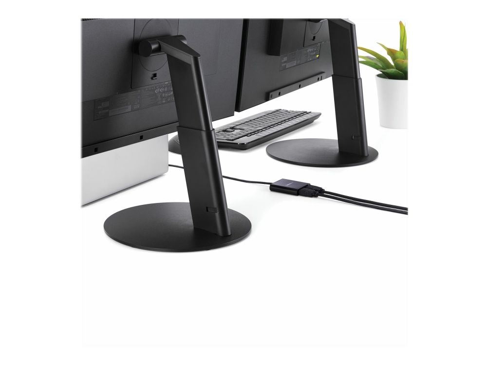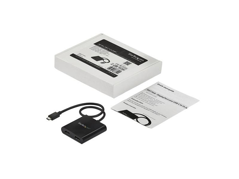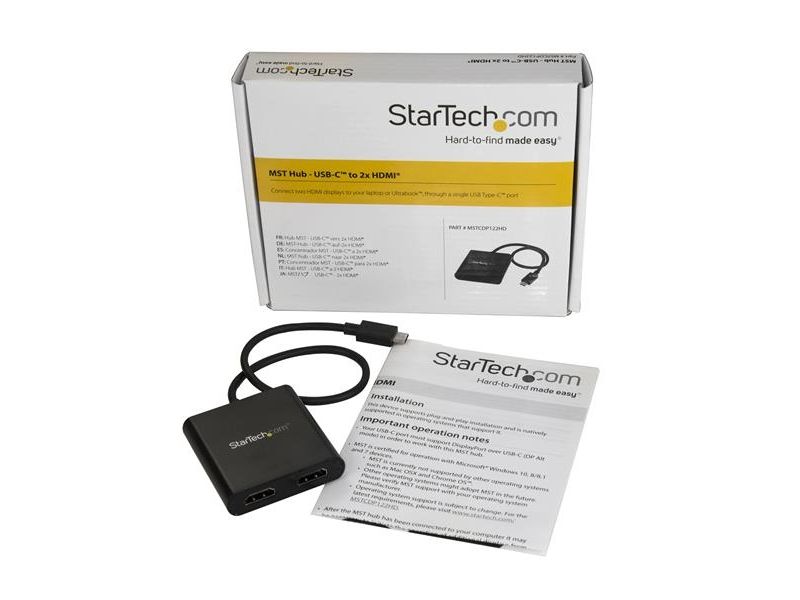 Med denna MST-hubb kan du ansluta två HDMI -skärmar till din USB-C -dator. MST fungerar på alla Windows -enheter som stöder DP alt-läge över USB Type-C, som till exempel modeller av bärbara Dell Precision - och Dell XPS -datorer och ASUS ROG GL752. MST-hubben fungerar även med Thunderbolt 3-portar för att ge Thunderbolt 3 till dubbel HDMI-konvertering. USB-C HDMI-hubben strömförses från USB-C-porten, så du behöver ingen extra strömadapter. Denna adapter fungerar med USB Type-C-enheter som passerar en DisplayPort-videosignal. Öka din produktivitet med flera skärmar De nyaste generationerna av bärbara datorer är bärbarare än någonsin. Men kan det innebära att du får färre videoutgångar och en liten inbyggd skärm. Denna USB-C MST-hubb löser dessa problem genom att låta dig ansluta två oberoende HDMI-skärmar genom en USB-C-port på din dator så att multitasking blir mycket enklare. Om du använder MST-hubben kan du utöka ditt skrivbord till extra skärmar och strömma oberoende innehåll till varje skärm. Detta gör det enklare att multitaska och öka din produktivitet - perfekt för att skapa en hot desk-lösning med en trådlös uppsättning av tangentbord och mus. Hubben kan dessutom spegla samma bild till flera skärmar för fjärrvisning på till exempel digitala skyltar. Enastående bildkvalitet som inte tömmer systemets resurser MST-teknik använder ditt befintliga videokort för att minimera användningen av systemets resurser och samtidigt ge Ultra HD 4K-upplösningar. 4K stöds av de senaste A/V-enheterna och ger fyra gånger högre upplösning än 1080p. Eftersom MST-hubben kan sända HD i 1080p är den perfekt för alla högupplösta applikationer som till exempel grafisk design och CAD-ritningar.
