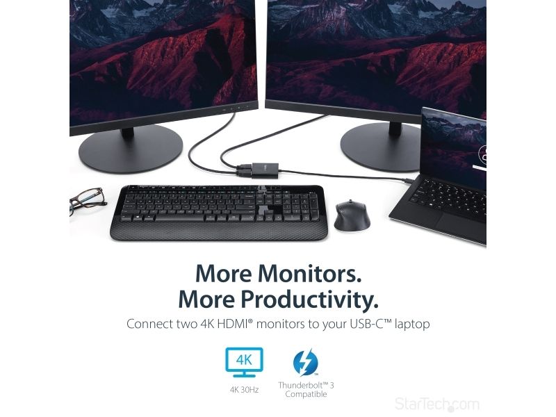 StarTech.com MST-hubb med två portar för USB-C till HDMI - 4K 30 Hz - Adapterkabel - USB-C hane till HDMI hona - svart - 4K30 Hz (3840 x 2160) stöd, 2560 x 1600 (WQXGA)-stöd 60 Hz - för P/N: TB33A1C