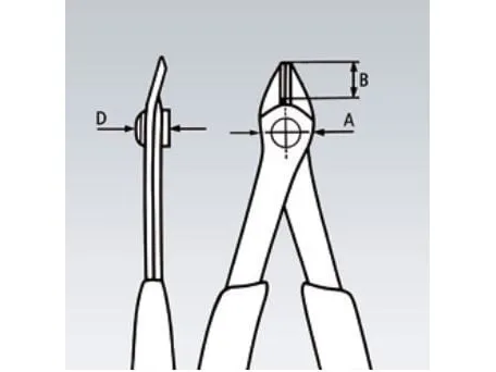 Precisionstång för de finaste skärarbetena, t.ex. inom elektronik och finmekanik. Slipade, mycket vassa kanter utan fas. Exakt formade spetsar skär även angränsande trådar från Ø 0,2 mm. Skärkant med kontrollerad förskjutning av mikroskärkant, vilket garanterar lång livslängd och ytterst exakta skärningar, även på de tunnaste trådarna. Ledad med nit i rostfritt stål. Extremt lätt att använda, så att arbetet inte blir slöt. Med öppningsfjäder och öppningsbegränsning. Skärhårdhet ca. 54 HRC. INOX-verktygsstål