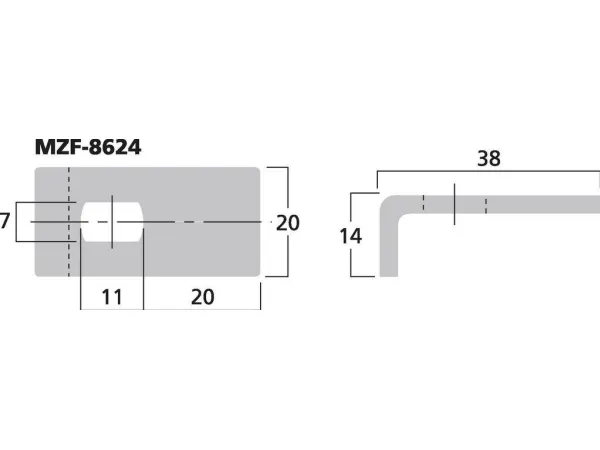 Fixing clamp for speaker grilles;#Metal;#Black lacquered;# Drill hole size: 7 x 11 mm;#Dimensions: 38 x 20 x 14 mm;;Manufacturer information:;MONACOR INTERNATIONAL GmbH & Co. KG