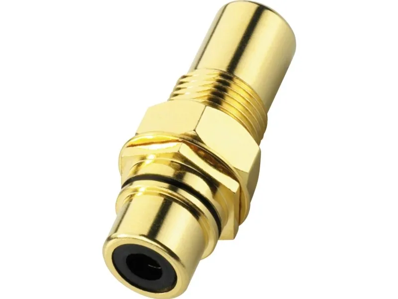 RCA feed-through panel jack;#Basic, solderless connectors for the use in racks;#Gold-plated version;#Black colour coding;;Manufacturer information:;MONACOR INTERNATIONAL GmbH & Co. KG