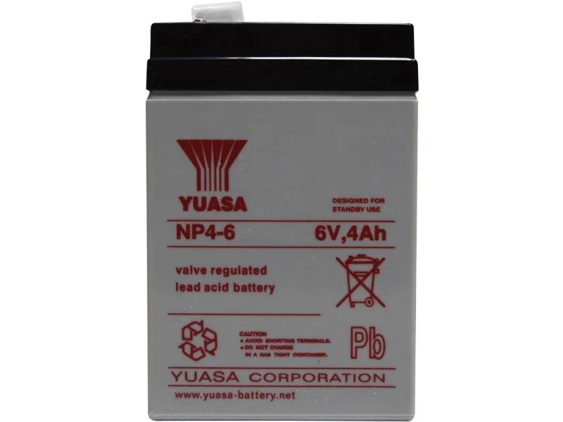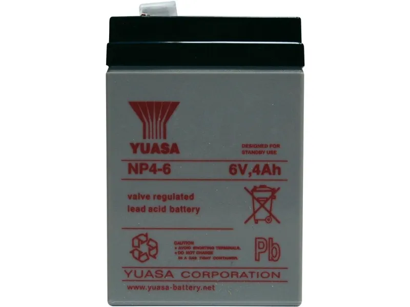 Yuasa NP4-6, Blybatterier (VRLA), Vita, 4000 mAh, 6 V, 870 g