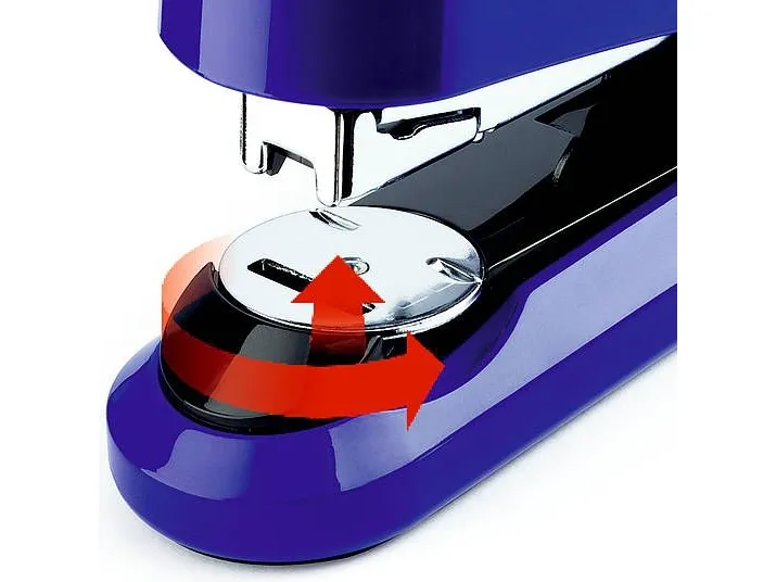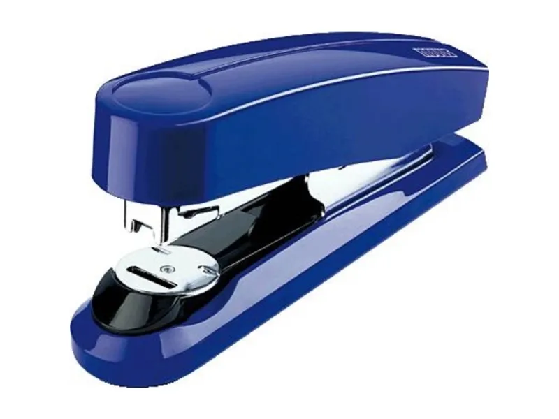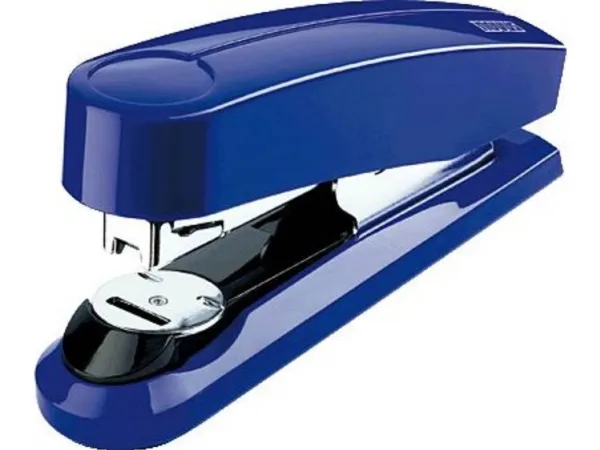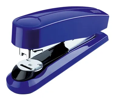 - Compact flat-clinch stapler for everyday professional use.\n- Patented system for flat-clinch staplers for temporary and permanent stapling as well as for nailing.\n- Full-metal device with shiny plastic casing.\n- Press button loading system with double staple guide for precision stapling.\n- Weight: approx. 265 g.\n- Includes 200 staples of type 24/6 DIN SUPER.