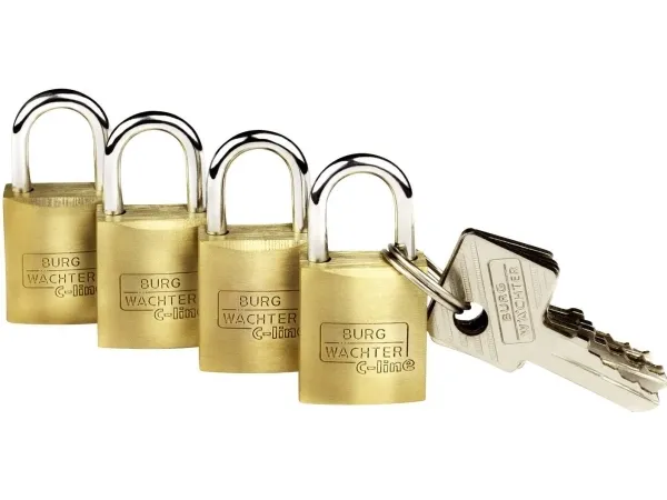 Burg Wächter Set med 4 Quadro 222 15 SB identiska nyckellås i mässing