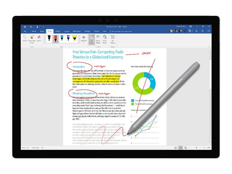 Surface Pen är nu bättre och snabbare än någonsin, med lutning för skuggning, större känslighet och praktiskt taget ingen fördröjning. Den hjälper dig att fånga dina tankar och få mer gjort.