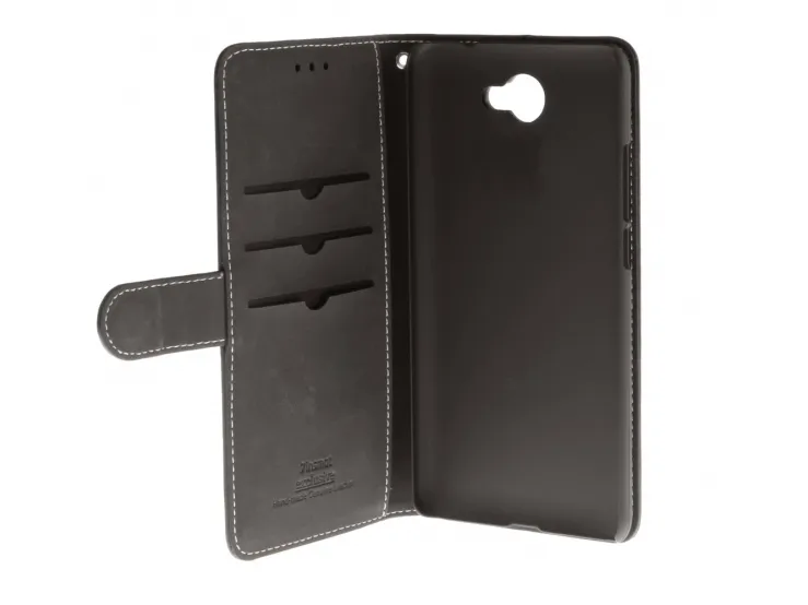 Insmat Exclusive Flip Case - Vikbart fodral för mobiltelefon - genuint läder - svart - för Huawei Y7