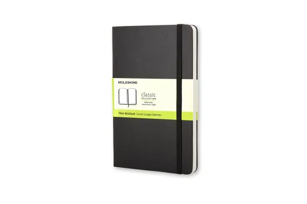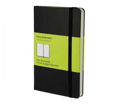 This basic, yet classic Pocket Plain notebook is one of the best selling Moleskine notebooks.This reliable travel companion, perfect for writings, thoughts and passing notes, has a cardboard bound cover with rounded corners, acid free paper, a bookmark, an elastic closure and an expandable inner pocket that contains the Moleskine history.