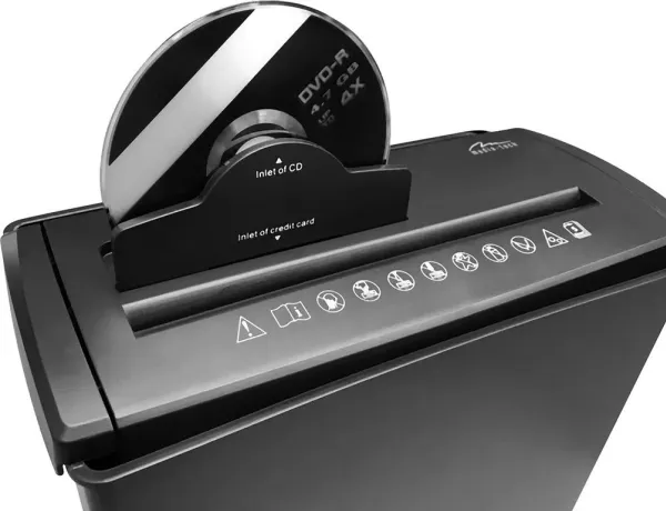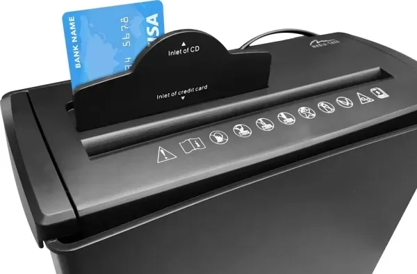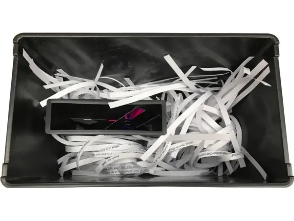 The device cuts confidential documents into scraps with a width of 7mm, making it impossible to recover the data. The bin capacity is 8L. Simply remove the top part of the shredder to empty clippings from the bin.