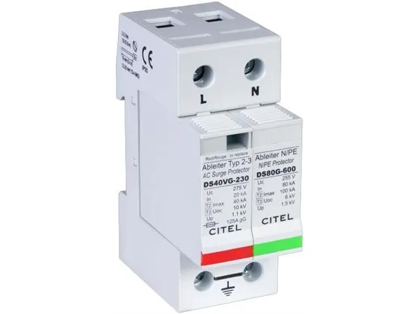 Transientskydd, 1 P+noll, kombi-ledare för montering i huvud- och undercentraler (TT- och TN-C-system) Typ 2+3