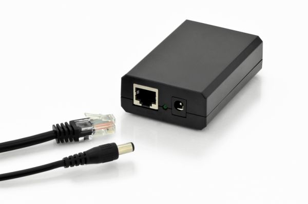 The DIGITUS PoE splitter provides data and power via a single Ethernet cable to devices, which don't support PoE.