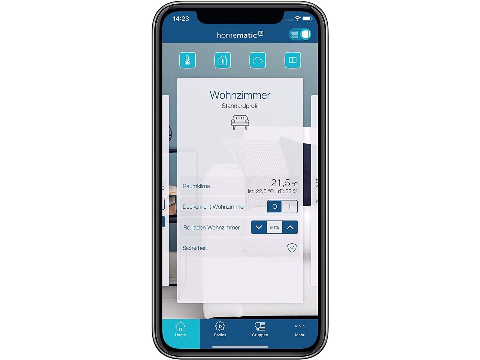 - Regulates the room temperature in connection with one or more Homematic IP Radiator Thermostats or Homematic IP Floor Heating Actuators