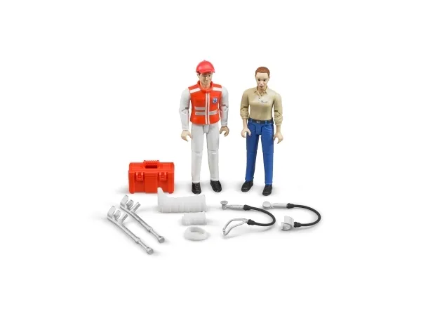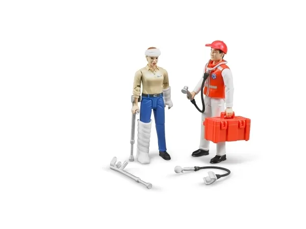The emergency services figure set is the ideal supplement for any deployment of BRUDER fire services, police and emergency services. The paramedic is perfectly equipped for medical emergencies. The figure can use the stethoscope on the included patient and measure the blood pressure. If necessary, bandages can be quickly applied and crutches support the healing process. BRUDER Spielwaren offer numerous emergency services vehicles and enhancing features to completely recreate emergency services deployment.