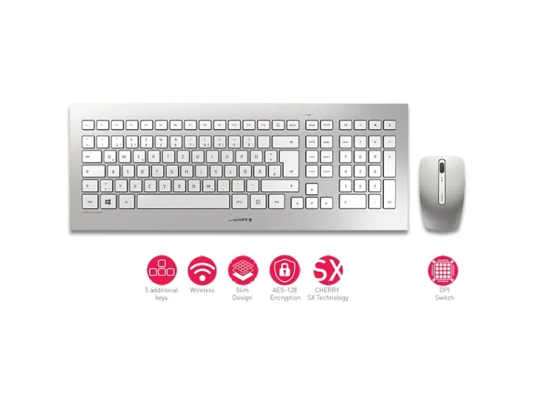 CHERRY DW 8000 - sats med tangentbord och mus - fransk - vit, silver Inmatningsenhet