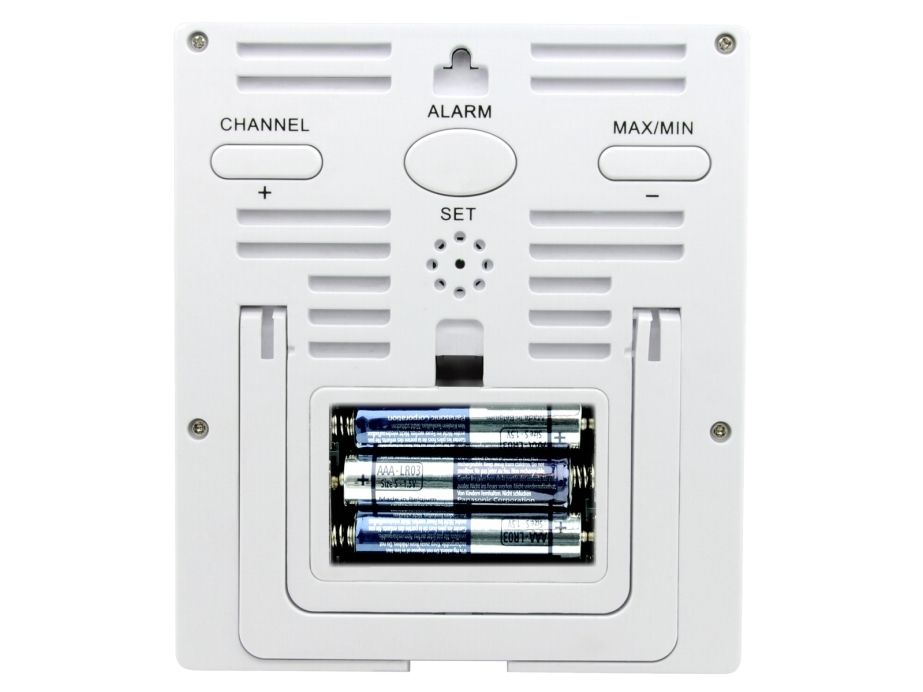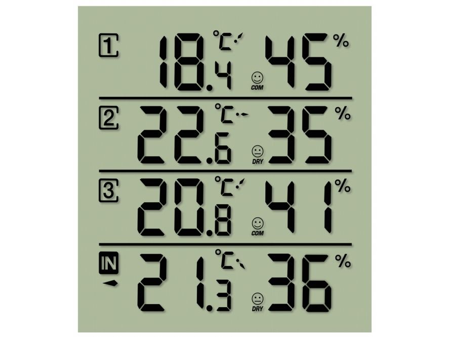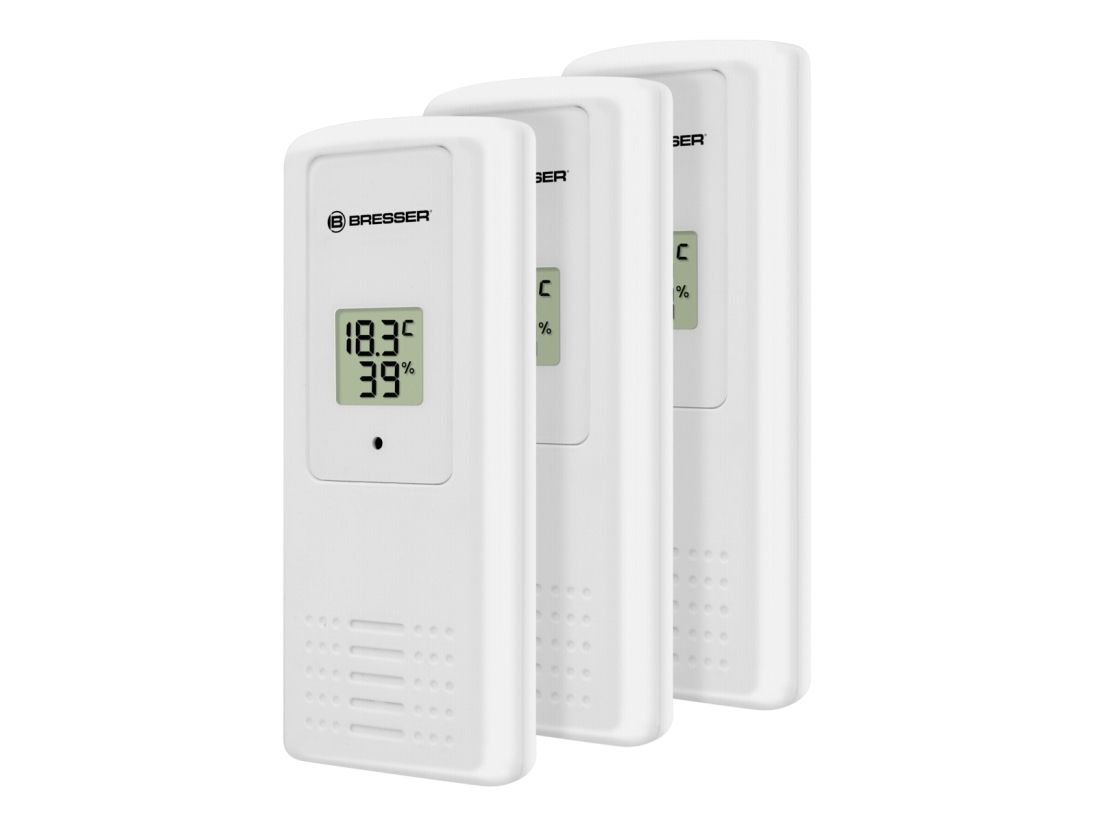 The three sensors deliver the data sets over 433 MHz radio frequency to the master station, which also measures temperature and humidity.
