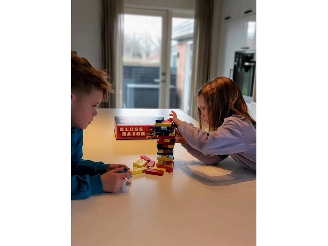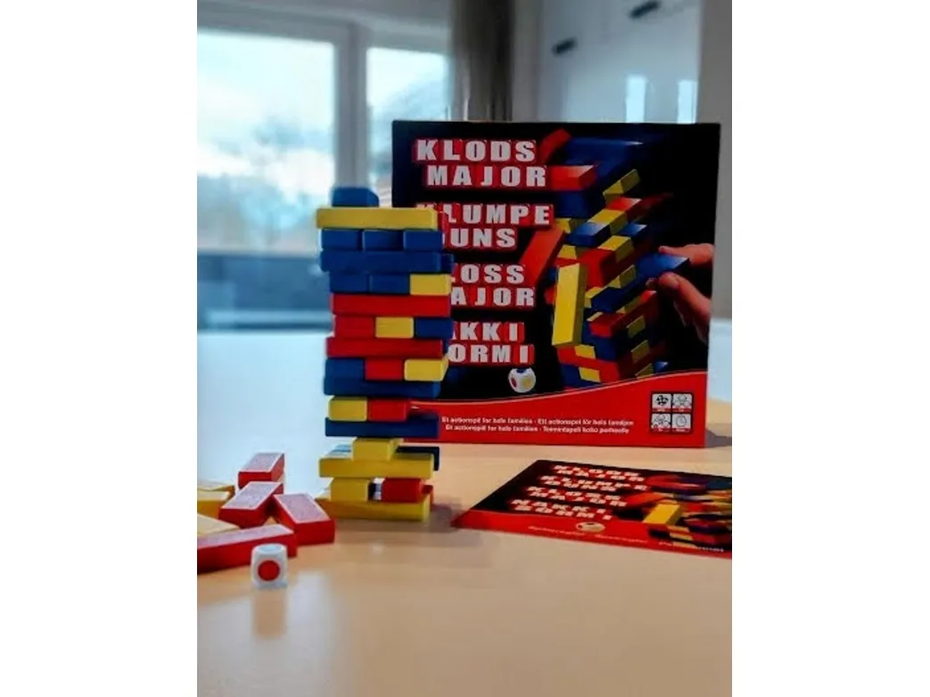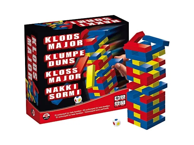 Ett spännande spel för hela familjen, där man ska ha nerver av stål och vara smart! Bygg ett torn med klossarna. Bygg tornet ännu högre genom att ta bort en kloss och placera den överst på toppen. Tornet växer sig högre för varje spelare och spänningen stiger för varje lager som läggs på. Klossarna är inte lika tjocka, så några av dem är lättare att ta bort än andra. Om man välter tornet får man titeln som "JENGA" och är ute ur spelet! Speltid: Ca. 30 minuter. För 2 - 6 spelare. Från 6 år.