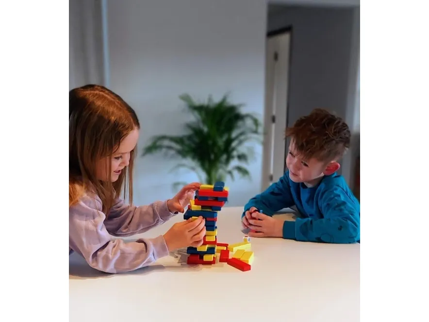 JENGA är den som välter tornet. Spel för 2-6 pers. Från 6 år.