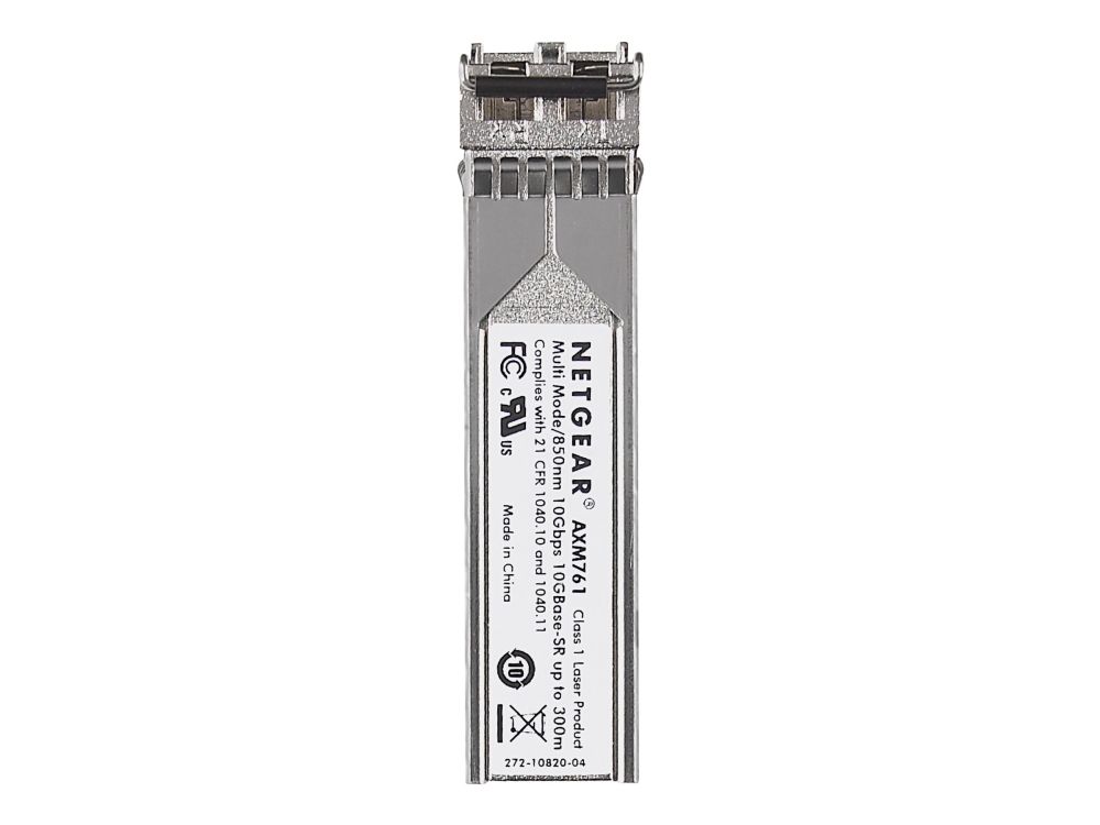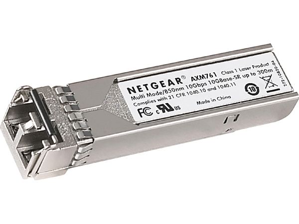 This GBIC is built to insert into any one of the two built-in 10 GE SFP+ interfaces of GSM7328Sv2 and GSM7352Sv2, and into the 10 GE SFP+ interface of AX743 adapter module for GSM73xxS/GSM73xxSv2. Once inserted (hot-swappable), the AXM761 10GBASE-SR SFP+ (LC connector) drives 10 Gigabit Ethernet up to 300m distances with 50/125µm OM3 multimode fiber cables, or up to 33 m distances with 62.5/125µm OM1 multimode fiber cables.