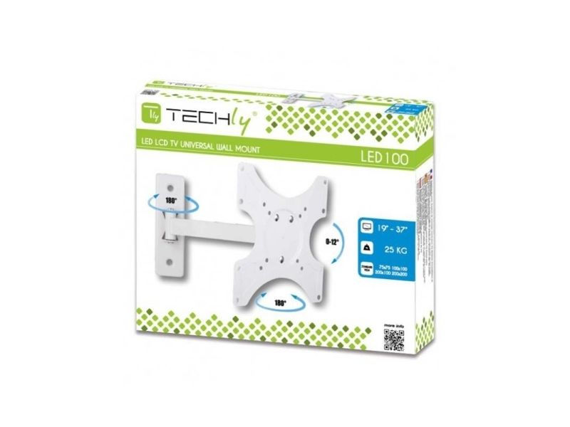Techly ICA-LCD-2901WH, 94 cm (37"), 75 x 75 mm, 200 x 200 mm, 0 - 12°, Metall, Vit