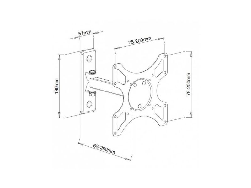 - Dimensions: 190 x 57 mm wall plaque; 65-260 mm arm, 1.3kg;