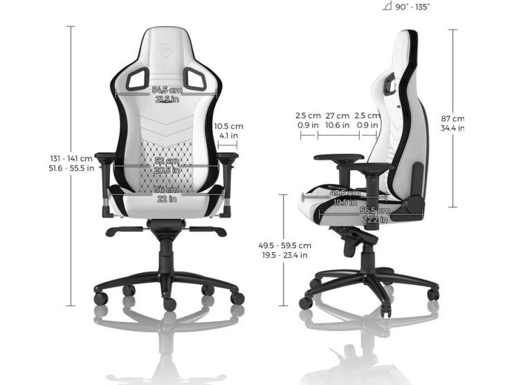 noblechairs Epic, Stoppad sits, Stoppat ryggstöd, Svart, Vit