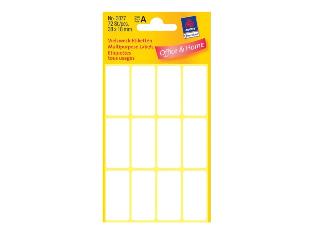 Avery Zweckform - Vit - 18 x 38 mm 72 etikett (er) (6 ark x 12 etiketter för flera ändamål