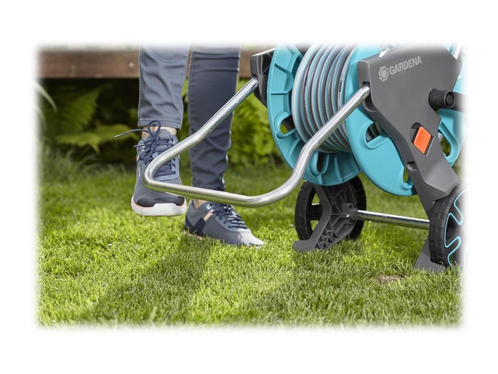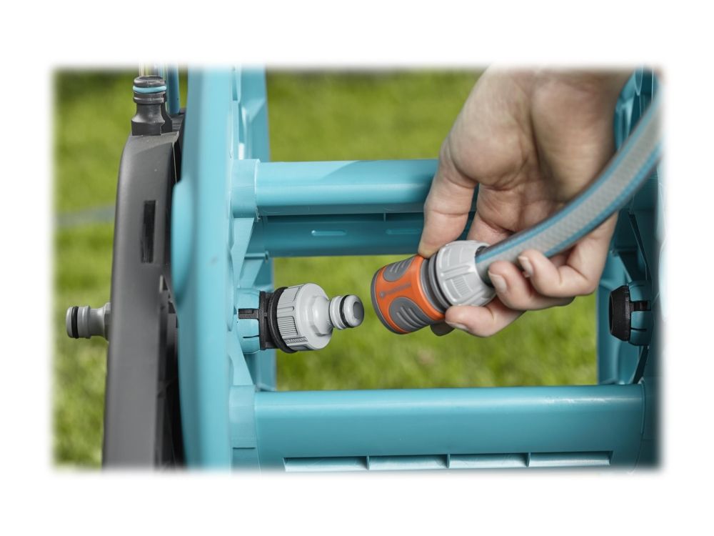 Slangvinda på hjul Manuell Funktionell Svart, Blå, Rostfritt stål Metall, Plast Ja 60 m 2 hjul 13,15,19 mm Ja Ja Tyskland Nej