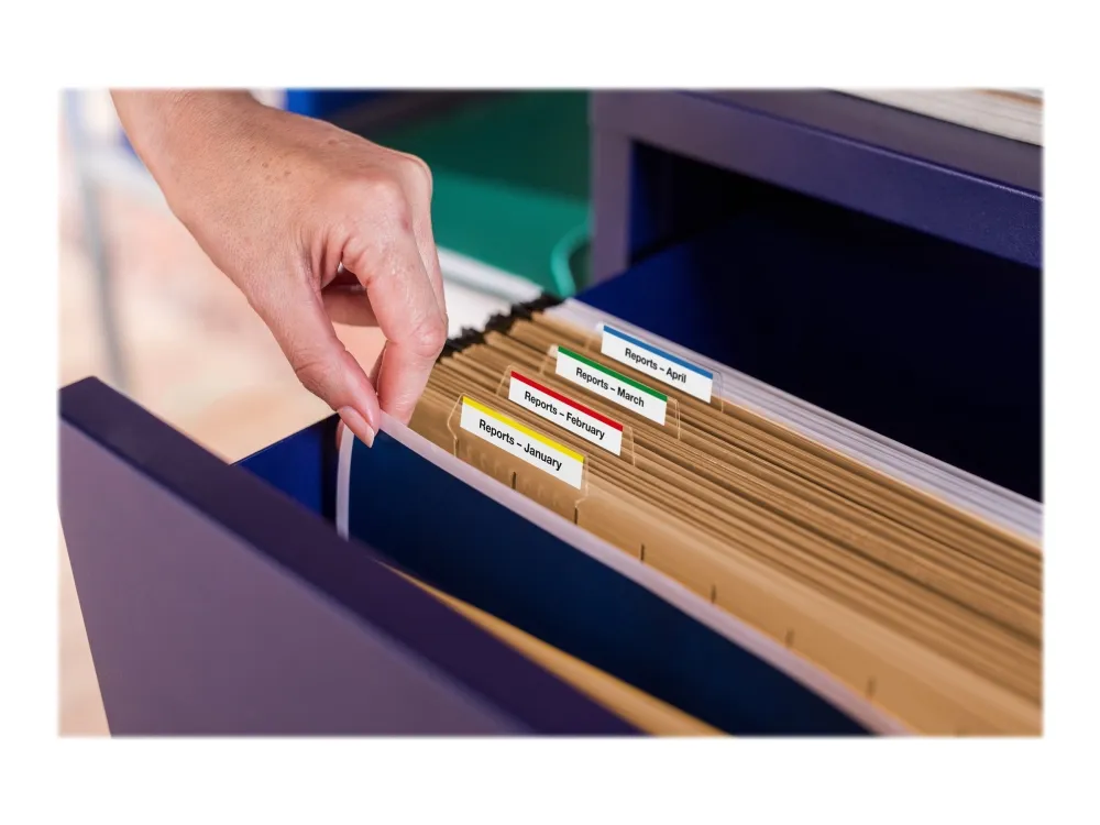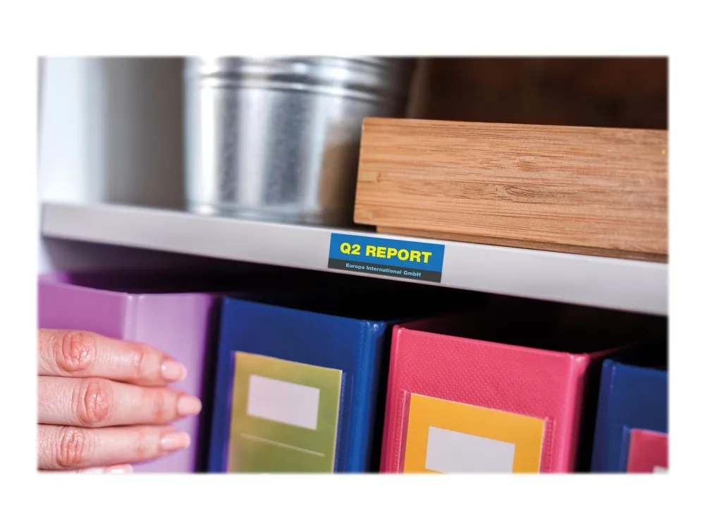 Skapa färgstarka etiketter för filer, mappar, hyllor och arkivlådor med CZ-1002 etikettrulle. Märk upp dina ägodelar med en personlig etikett för att vara säker på att du inte blir av med dem. Skapa iögonfallande etiketter som garanterat kommer att synas.