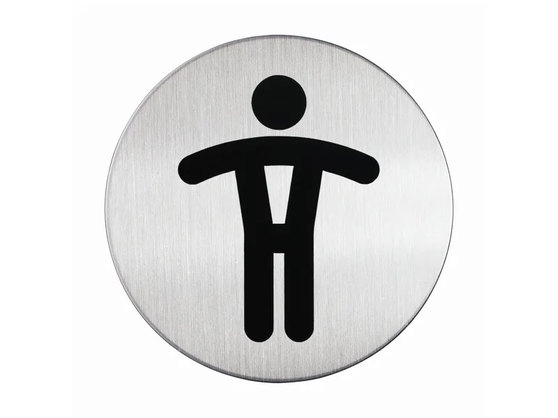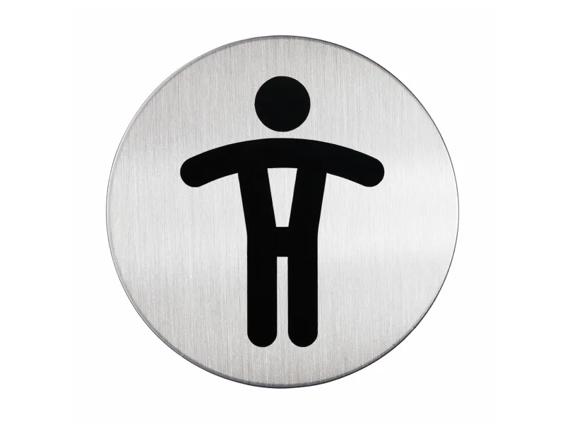 Symbolskylt Hållbar Herrtoalett Ø83 mm metallpiktogram
